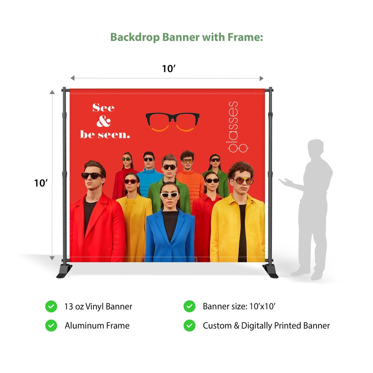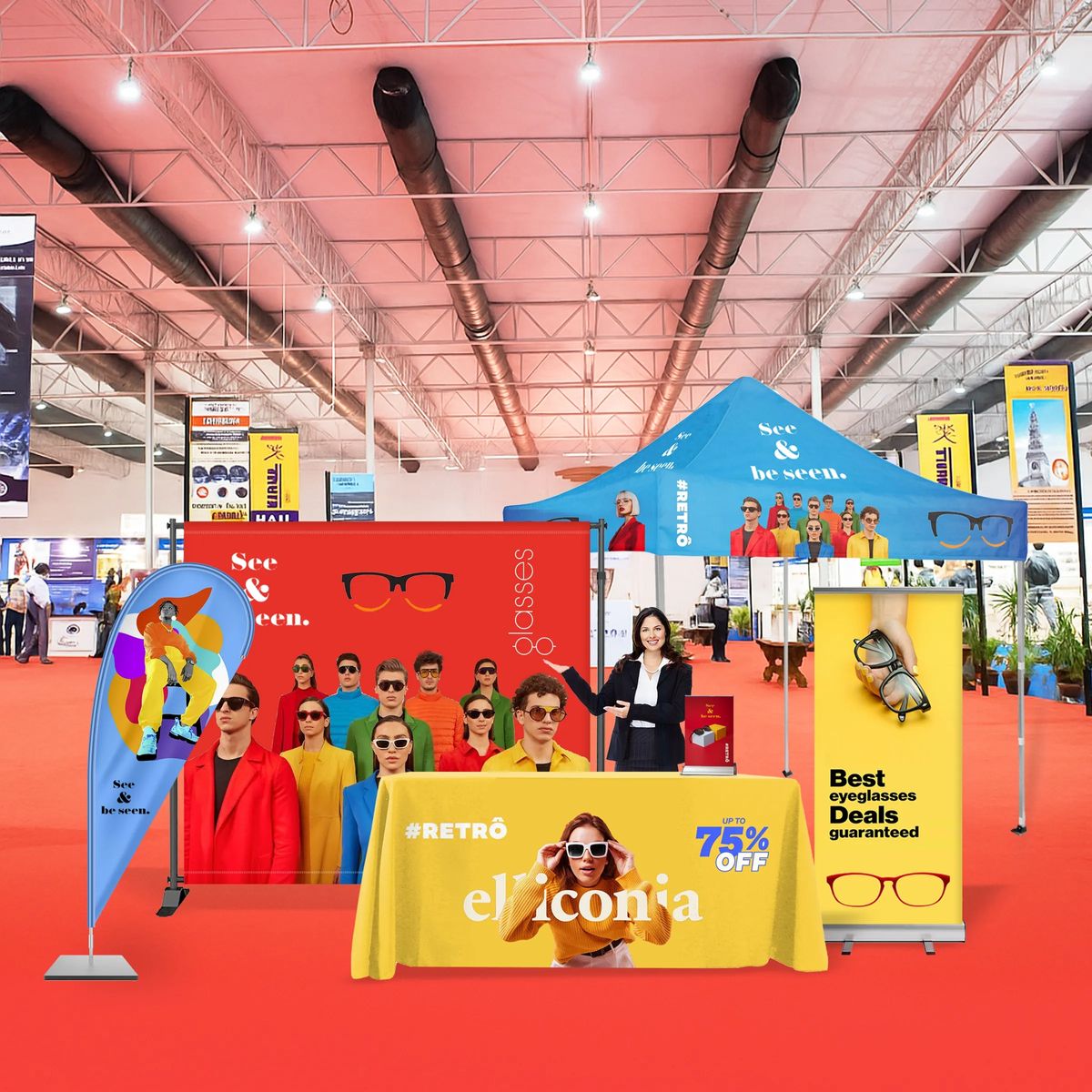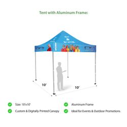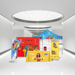 Additional InformationStand out with a full 10'x10' display kit-backdrop, roll-ups, 6' table cover, tent & teardrop flag-built for bold branding.