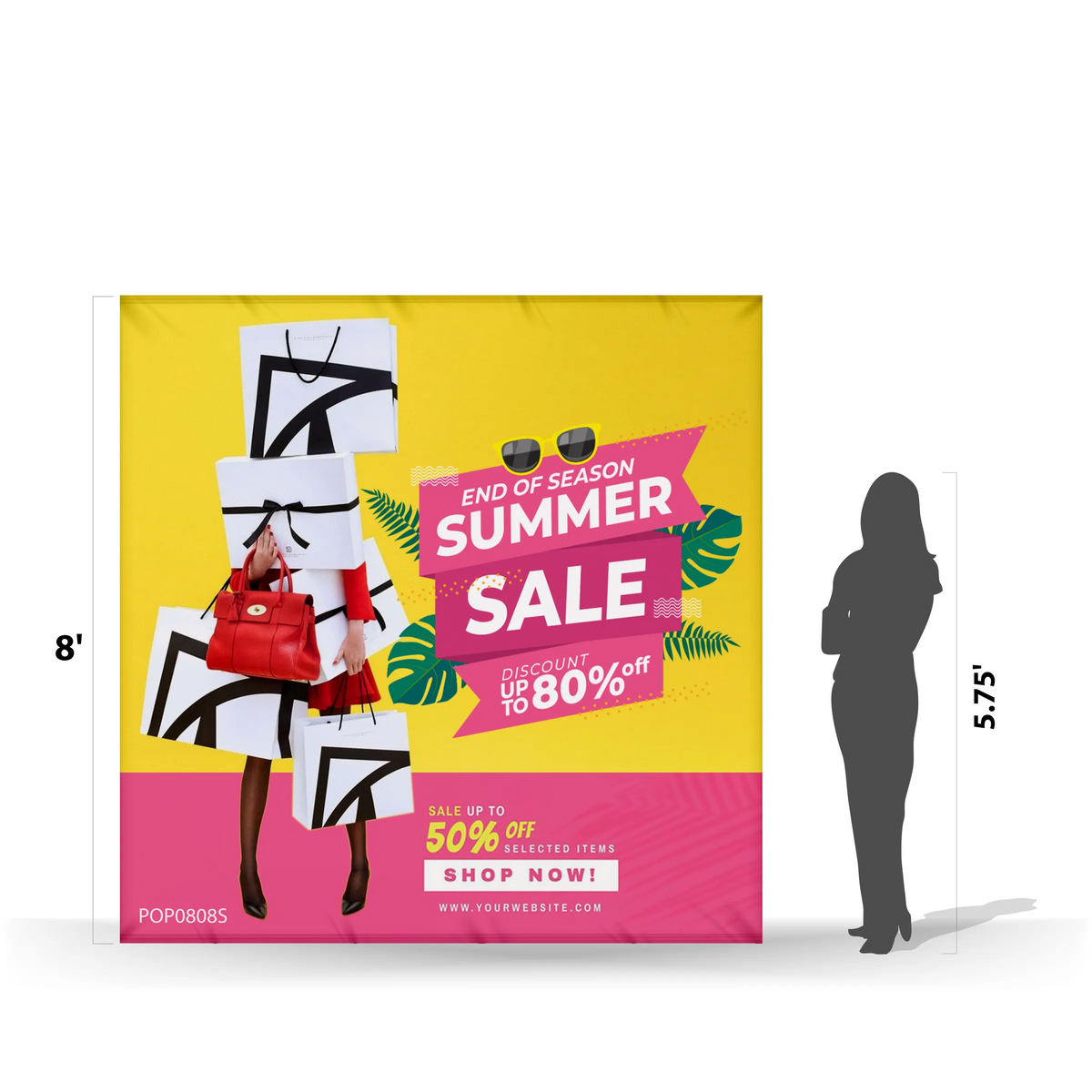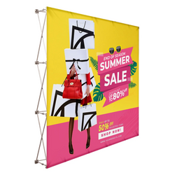 Additional Information8' x 8' pop-up fabric display with vibrant prints, durable frame & easy setup. *Endcaps not included.*