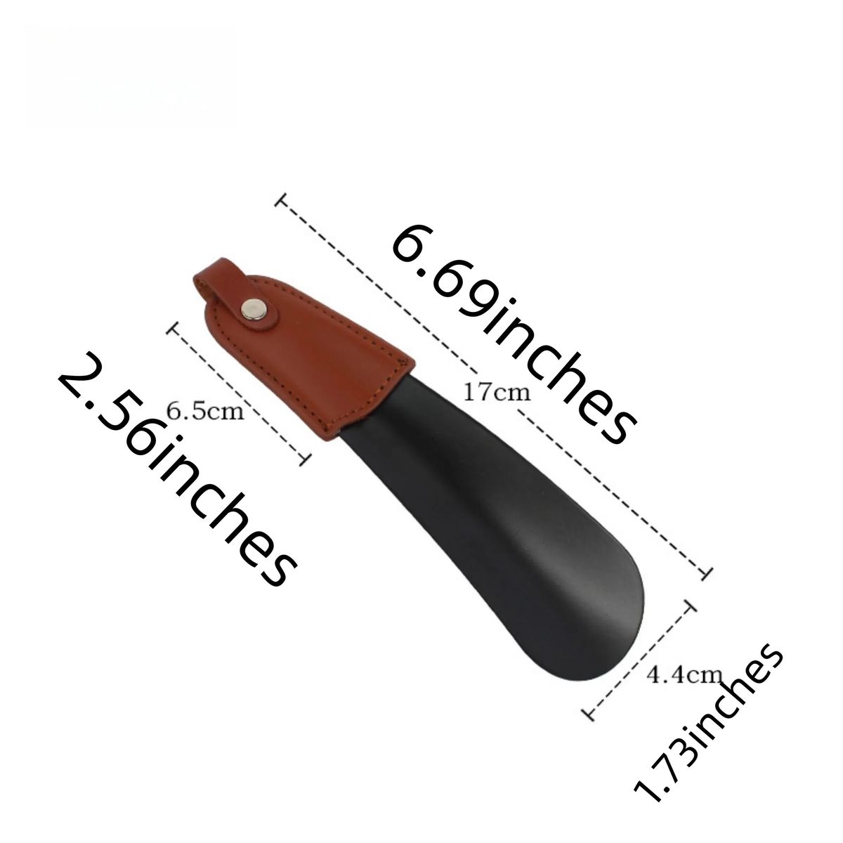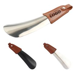 Made of Stainless Steel+ PU leather. size: 6.7"Lx1.7"W. A high- quality shoehorn can help you put on and take off your shoes more easily and quickly. The product is small, lightweight, easy to carry and store. We can customize logo with a variety of sizes and colors. 100% guarantee for quality. Rush Service.